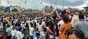 वंदे भारत एक्सप्रेस प्लेटफाॅर्म नंबर दो पर आ रही है..सुनते लोगों के खिले चेहरे
