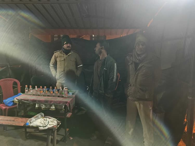 रजौली चेकपोस्ट पर उत्पाद विभाग ने की कार्रवाई फोटो कैप्शन – शराब के साथ गिरफ्तार व्यक्ति व उत्पाद प्रतिनिधि, रजौली उत्पाद अधीक्षक अरुण कुमार मिश्र के निर्देशन और उत्पाद निरीक्षक अमृत कुमार गुप्ता के नेतृत्व में समेकित जांच चौकी रजौली पर चलाये जा रहे सघन वाहन जांच अभियान के दौरान उत्पाद विभाग की टीम को बड़ी सफलता हाथ लगी है. जांच के दौरान झारखंड से बिहार आ रही एक यात्री बस से अवैध विदेशी शराब बरामद की गयी है, जबकि एक व्यक्ति को मौके से गिरफ्तार किया गया है. जानकारी के अनुसार रांची से पटना जा रही श्री साईं नामक यात्री बस को रजौली चेकपोस्ट पर जांच के लिए रोका गया. बस की तलाशी के दौरान एक यात्री के पास से अवैध विदेशी शराब की खेप बरामद हुई. गिरफ्तार व्यक्ति की पहचान धर्मवीर कुमार के रूप में की गयी है, जो झारखंड के रांची जिले के बरियातु थाना क्षेत्र अंतर्गत मोराहबादी का निवासी है. उसकी उम्र करीब 36 वर्ष बतायी जा रही है. वह सहदेव राय का पुत्र है. तलाशी के दौरान आरोपित के पास से मैजिक मोमेंट्स रिमिक्स ऑरेंज फ्लेवर वोडका की 180 मिली लीटर वाली आठ बोतलें और 500 मिलीलीटर की गॉडफादर बियर की एक कैन बरामद की गयी है.