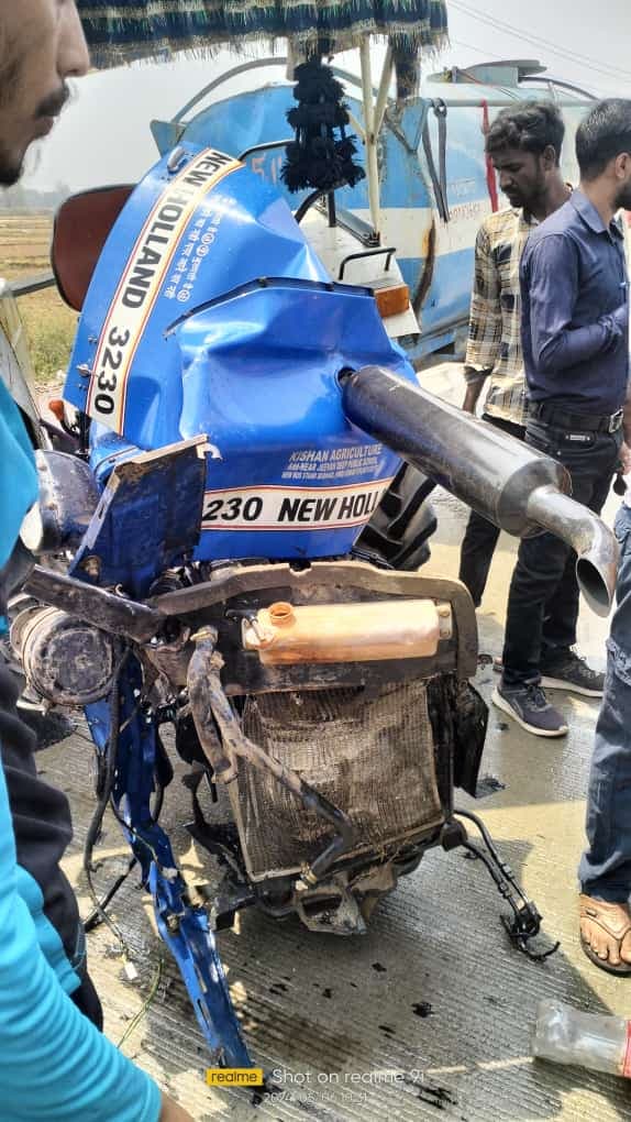 फोरलेन पर ट्रैक्टर में ट्रक ने मारी टक्कर, चालक व हेल्पर जख्मी