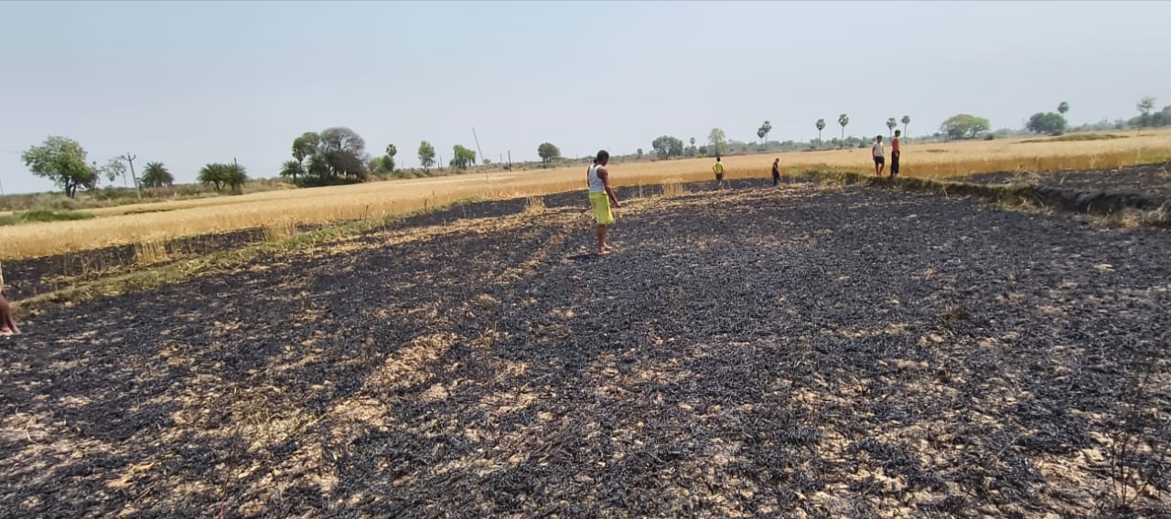 फोटोकैप्शन- आग लगने के बाद जला हुआ खेत. नारदीगंज. थाना क्षेत्र के जफरा गांव में खेत में लगी गेहूं की फसल में आग लगने की घटना हुई. इस घटना में किसानों के 12 कट्ठा खेतों में लगी गेहूं की फसल जलकर खाक हो गया. घटना में किसान सुबोध सिंह के 10 कट्ठा और पंकज सिंह के दो कट्ठा में गेहूं का फसल को आग ने अपनी आगोश में लेकर स्वाहा कर दिया. घटना रविवार को तकरीबन 11 बजे दिन के आसपास में घटी. किसान कहते हैं कि आग लगने के कारणों का पता नहीं जल पाया. इस रास्ते से टोटो चालक सवारी लेकर जा रहे थे,तभी उनकी नजर खेतों में लगी फसल में आग की लपटें पर पड़ी. तब वे शोर मचाने लगा. शोर-शराबे को सुनकर पीड़ित परिवार के अलावा गांव से काफी संख्या में लोग दौड़े, और पंपसेट, बोरिंग चलाकर आग को बुझाने में लग गये. काफी अथक परिश्रम के बाद आग पर काबू पाया गया. लेकिन, तब तक सबकुछ जलकर भस्म हो चुका था. गनीमत रही भीषण आग के प्रकोप ने अन्य किसानों को प्रभावित नहीं कर पाया. इधर, पीड़ित परिवार ने घटना की सूचना सीओ को देकर आपदा प्रबंधन कोष से सहयोग राशि देने की मांग किया है.