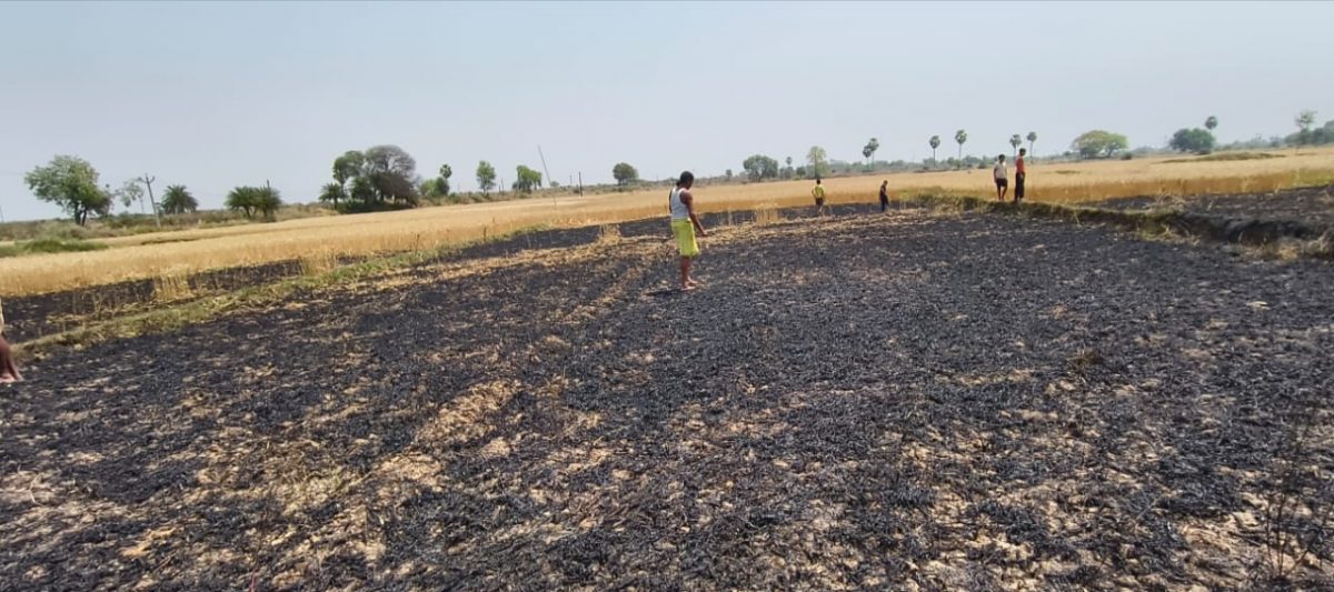 खेत में लगी आग, गेहूं की फसल जलकर हुई राख
