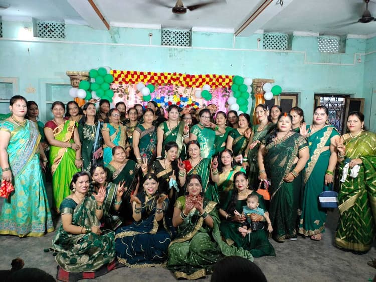 अकबरपुर. अकबरपुर बाजार स्थित माहुरी वैश्य मंडल में शुक्रवार को ज्योति भदानी के नेतृत्व में सावन महोत्सव का आयोजन किया गया. सभी महिलाएं हरी साड़ी, हरी चुड़िया व हाथों में मेहंदी लगाकर कार्यक्रम में शिरकत की. गणेश व सरस्वती वंदना के साथ कार्यक्रम का प्रारंभ हुआ. इसके बाद कार्यक्रम में महिलाओं ने एक से एक नृत्य प्रस्तुत कर समां बांधा दिया. सावन के गीतों की प्रस्तुति से सभी को मंत्रमुग्ध कर दिया. इस दौरान महिलाओं के बीच म्यूजिकल डांस, डांस प्रतियोगिता, खेल का आयोजन किया गया. मुख्य अतिथि माहुरी सामज के अध्यक्ष राकेश कुमार ने कहा कि सावन हरियाली व जीवन में खुशियों का संदेश देता है. साथ ही कहा कि सावन का महिना सुहागिन महिलाओं के लिए विशेष महत्व है. मौके पर पूर्व पसंस अनिता देवी, माही सेन, मोनी कुमारी, शिल्पा, मोनी देवी, निकिता देवी, शर्मिला देवी, पूजा देवी, अनिता देवी समेत बड़ी संख्या में महिलाएं मौजूद थी.