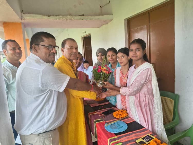 कैप्शन – उत्क्रमित मध्य विद्यालय महूगांईं में आयोजित समारोह में शामिल शिक्षक व अन्य. प्रतिनिधि, गोविंदपुर उत्क्रमित मध्य विद्यालय महूगांईं के प्रांगण में बुधवार को विदाई सह सम्मान समारोह का आयोजन किया गया. कार्यक्रम की अध्यक्षता विद्यालय के प्रधानाचार्य आनंददेव पांडेय ने की, जबकि मंच संचालन शिक्षक प्रदीप कुमार, सीताराम पांडेय और नीतिश कुमार के संयुक्त नेतृत्व में संपन्न हुआ. समारोह के मुख्य अतिथि प्रखंड एमडीएम पदाधिकारी विजय शंकर रहे. इस अवसर पर विद्यालय की शिक्षिका कल्पना सिंह के सौजन्य से तिथि भोज का आयोजन भी किया गया. इसमें विद्यालय परिवार और ग्रामीणों ने बड़ी संख्या में भाग लिया. कार्यक्रम के दौरान विद्यालय की शिक्षिका श्यामा रानी सिन्हा, शिक्षक शशिकांत नारायण एवं ज्ञानवर्धन सर को माल्यार्पण, पुष्पगुच्छ और अंगवस्त्र भेंट कर भावभीनी विदाई दी गयी. इस दौरान विद्यालय का वातावरण भावुक हो उठा. विदाई के साथ-साथ नवपदस्थ शिक्षक ध्रुव कुमार वर्मा एवं शिक्षिकाएं सबा जमी, स्नेहा कुमारी, प्रीति, रीतिका राय का भी गर्मजोशी से स्वागत किया गया. स्वागत समारोह में विद्यालय के प्रधानाचार्य द्वारा उन्हें डायरी और पेन प्रदान कर सम्मानित किया गया. समारोह में विद्यालय के छात्र-छात्राओं ने विदाई गीत प्रस्तुत कर पूरे विद्यालय परिसर को भावुक कर दिया. इस अवसर पर शिक्षकों और छात्रों के बीच गहरी आत्मीयता का वातावरण देखने को मिला. इस मौके पर विद्यालय के शिक्षक मीणा देवी, योगेन्द्र कुमार लाल, उनीता कुमारी, अनुपम कुमारी, दिनेश कुमार सिंह, शिक्षा सेवक, रसोइया, बड़ी संख्या में छात्र-छात्राएं और गणमान्य ग्रामीण मौजूद रहे. इस आयोजन ने न सिर्फ सेवानिवृत्त शिक्षकों को सम्मान दिया, बल्कि नवपदस्थ शिक्षकों के प्रति स्वागत और सहयोग का संदेश भी दिया.