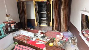 15-16 लाख के जेवरात, नकदी व सामानों की चोरीदीवार और शटर तोड़कर की गयी सेंधमारी