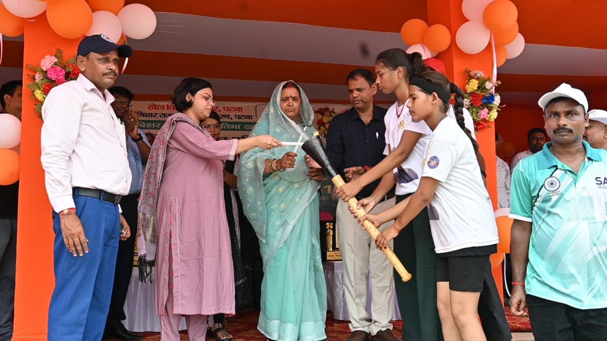Nawada news. खेल भावना और ऊर्जा से सराबोर माहौल में रविवार को नवादा के ऐतिहासिक हरिश्चंद्र स्टेडियम में मशाल खेल प्रतियोगिता 2025 का भव्य शुभारंभ हुआ.