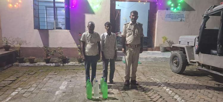 धमौल पुलिस ने थाना क्षेत्र के दर्जी बीघा के पास से शराब के साथ दो लोगों को गिरफ्तार किया. इसकी जानकारी देते हुए थानाध्यक्ष हिमांशु कुमार ने बताया कि छापेमारी में 12 लीटर देसी महुआ शराब बरामद की गयी. साथ ही बिजूबिगहा के परशुराम केवट के पुत्र आनंदी प्रसाद और बाढ़ो प्रसाद के पुत्र अनिल महतो को गिरफ्तार किया गया है. उन्होंने बताया कि प्राथमिकी दर्ज कर ली गयी है. पेट में दर्द होने के कारण अनिल महतो को पुलिस अभिरक्षा में इलाज के लिए भेजा गया है, जबकि आनंदी प्रसाद को जेल भेज दिया गया है.डिस्क्लेमर: यह प्रभात खबर समाचार पत्र की ऑटोमेटेड न्यूज फीड है. इसे प्रभात खबर डॉट कॉम की टीम ने संपादित नहीं किया है