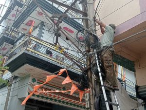 शहर के वार्ड सहित मुख्य शहरों से अंधेरे होगा दूरफोटो कैप्शन – लाइट लगते कर्मचारीप्रतिनिधि, नवादा कार्यालय.