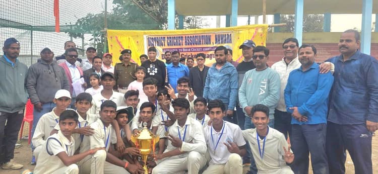 तीन विकेट लेने वाले गेंदबाज प्रिंस कुमार को मैन ऑफ द मैच की ट्रॉफी दी गयी बेस्ट बल्लेबाज की ट्रॉफी धर्म कुमार को मिला फोटोकैप्शन- विजेता टीम नवादा कार्यालय जिला क्रिकेट एसोसिएशन नवादा की ओर से कादिरगंज हाइस्कूल मैदान में आयोजित बी डिवीजन लीग के फाइनल मुकाबले में युवराज क्रिकेट क्लब ने चैलेंजर क्रिकेट क्लब को हराया. युवराज क्रिकेट क्लब ने टॉस जीत के पहले बल्लेबाजी करते हुए 30 ओवरों में 131 रन बनाकर ऑलआउट हो गया. युवराज क्रिकेट क्लब के कप्तान मार्कोस यादव ने 37, धर्म कुमार ने 30, जबकि गौरव ने 14 रनों का योगदान अपनी टीम के लिए दिया. गेंदबाजी करते हुए चैलेंजर क्रिकेट क्लब के गेंदबाज सचिन राज ने तीन, आशीष सिंह ने तीन, जबकि सूरज उत्कर्ष ने दो खिलाड़ियों को आउट किया. इसके जवाब में लक्ष्य का पीछा करने उतरी चैलेंजर क्रिकेट क्लब की टीम ने 25 ओवरों में 94 रन बनाकर ऑलआउट हो गयी. चैलेंजर क्रिकेट क्लब के तरफ से आर्यन 13, देव 10 व सूरज ने 19 रनों का योगदान अपनी टीम के लिए दिया. लेकिन अपनी टीम को जीत नहीं दिला सके.गेंदबाजी करते हुए युवराज क्रिकेट क्लब के गेंदबाज प्रिंस कुमार ने शानदार तीन विकेट, जबकि सनी व निर्मल ने भी दो-दो खिलाड़ियों का आउट किया. मैच में शानदार तीन विकेट लेने वाले गेंदबाज प्रिंस कुमार को मैन ऑफ द मैच की ट्रॉफी दी गयी. बेस्ट बल्लेबाज की ट्रॉफी धर्म कुमार को मिला, जबकि सर्वश्रेष्ठ गेंदबाज की ट्रॉफी सचिन राज को दिया गया. फाइनल में मुख्य अतिथि बिहार क्रिकेट एसोसिएशन के पूर्व अध्यक्ष गोपाल बोहरा, विशिष्ट अतिथि जिला क्रिकेट संघ के पूर्व अध्यक्ष रोहित सिंहा और कादीरगंज थाना प्रभारी अवध किशोर सिंह ने खिलाड़ियों के बीच पुरस्कार वितरण किया.