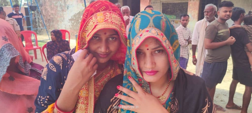 घूंघट की ओट में वोट डालने बूथों पर पहुंचीं नई-नवेली दुल्हनें, युवाओं-महिलाओं में भी दिखा उत्साह
