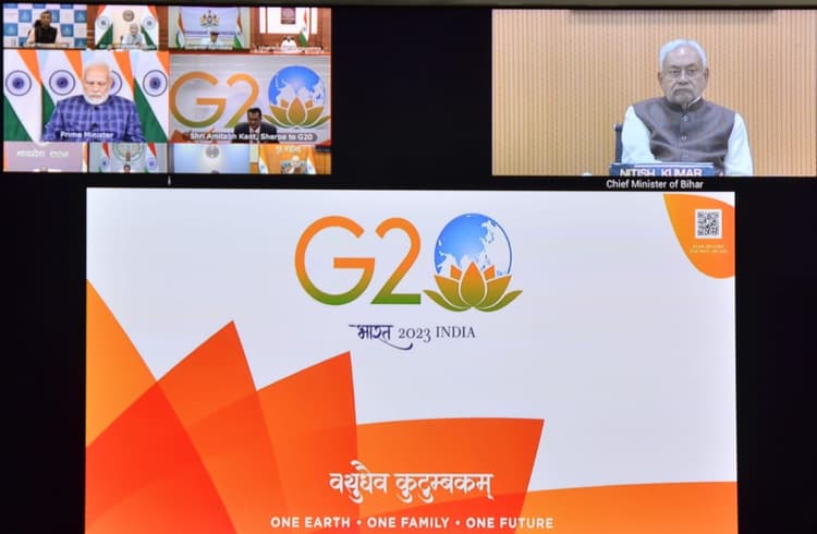 अगले साल भारत में जी-20 शिखर सम्मेलन होने जा रह है. भारत को जी-20 का नेतृत्व मिलने के उपलक्ष्य में बिहार सहित देश भर में 200 से ज्यादा कार्यक्रम होने वाले हैं. उसकी तैयरियां अभी से ही शुरू हो चुकी है. प्रधानमंत्री ने इसकी तैयारियों को लेकर सुझाव मांगने के लिए आज बैठक बुलाई थी. बैठक में बिहार के मुख्यमंत्री नीतीश कुमार भी शामिल हुए. आज शाम 5 बजे ये बैठक हुई. सीएम नीतीश कुमार वीडियो कॉन्फ्रेंसिंग के जरिए इस बैठक में शामिल हुए. हालांकि, उन्हें पहले भी इस बैठक में बुलाया गया था, लेकिन वो बैठक में शामिल नहीं हुए थे. इसके बाद उनके ऊपर भाजपा नेताओं ने हमले भी किये थे. भाजपा नेताओं का कहना था कि उनमें पीएम नरेंद्र मोदी का सामना करने की हिम्मत ही नहीं है.