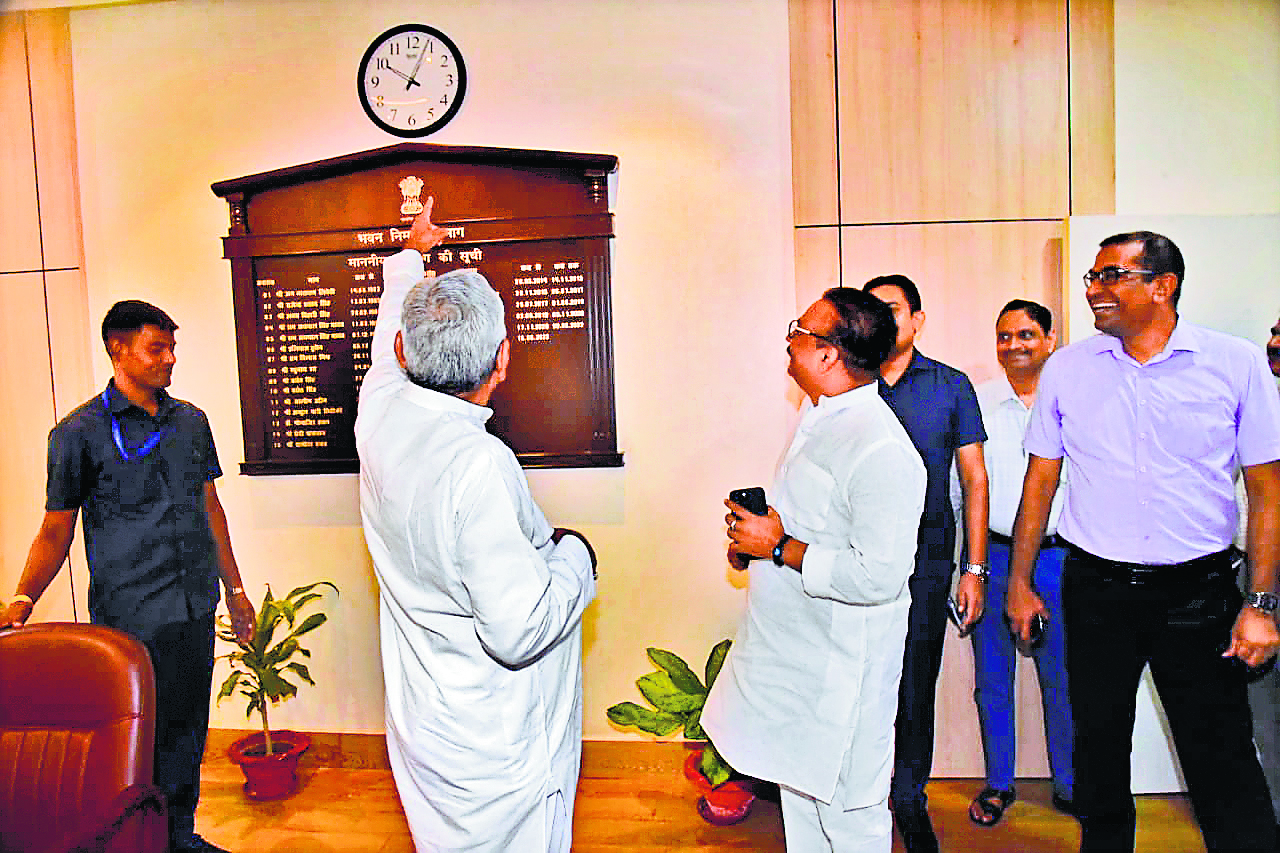 Nitish Kumar Photos: जब मुख्यमंत्री उनके कक्ष में खड़े थे, तो उसी समय भवन निर्माण मंत्री कार्यालय पहुंचे और सफाई दी. उन्होंने बताया कि देर क्यों हो गयी.
