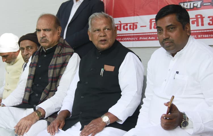 इस दौरान जीतनराम मांझी ने कहा कि मुख्यमंत्री का दलित प्रेम का मुखौटा अब सामने आ गया है. मुझे सदन में बोलने तक नहीं दिया गया. पटना में धरना भी नहीं देने दिया गया. उन्होंने कहा कि उनके अपमान को प्रधानमंत्री नरेंद्र मोदी ने तेलंगाना, राजस्थान व मध्य प्रदेश के विधानसभा चुनाव में प्रमुखता से उठाया. इस दौरान पार्टी के राष्ट्रीय अध्यक्ष व पूर्व मंत्री डॉ संतोष सुमन ने कहा कि सदन में पूर्व सीएम जीतनराम मांझी को बोलने से रोका गया. उनको अपमानित किया गया. इस दौरान मांझी के समर्थन में केंद्रीय गृह राज्य मंत्री नित्यानंद राय व केंद्रीय मंत्री गिरिराज सिंह भी पहुंचे.