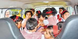 एक वैन में 10 से 15 बच्चों को बैठाया जाता है