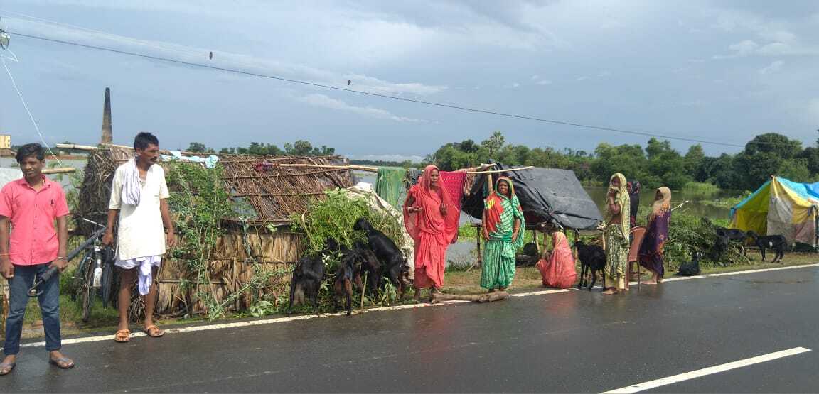 घर के नाम पर प्लास्टिक का तंबू है. वह कहते हैं- कई दिनों से तबीयत खराब है. उठा बैठा नहीं जा रहा. एकाएक घर में कल पानी घुस आया. टेंपू पर लाद कर पड़ोसियों ने यहां पहुंचा दिया. सुबह तेज बारिश हुई. ऊंची जगह नहीं होने के कारण तंबू के नीचे जमीन गीली हो गयी. मजदूरी कर घर का एक-एक सामान जुटाया था. सब पानी में बह गया. घर में कोई और नहीं. गरीबों की सालों की जमा खुशियां बाढ़ ऐसे ही बहा ले जाता है.