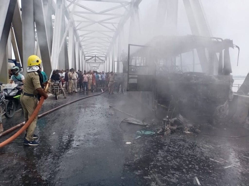 पुलिस ने बताया कि गायघाट ओवर ब्रिज के बीचो-बीच एक बस में आग लगने की सूचना मिली थी. बस हाजीपुर से पटना की तरफ आ रही थी. बस में आग बैटरी में शॉर्ट सर्किट से लगी थी. हालांकि चालक ने सूजबूझ दिखाते हुए बस को ओवर ब्रिज के किनारे रोककर बाहर निकाल दिया था