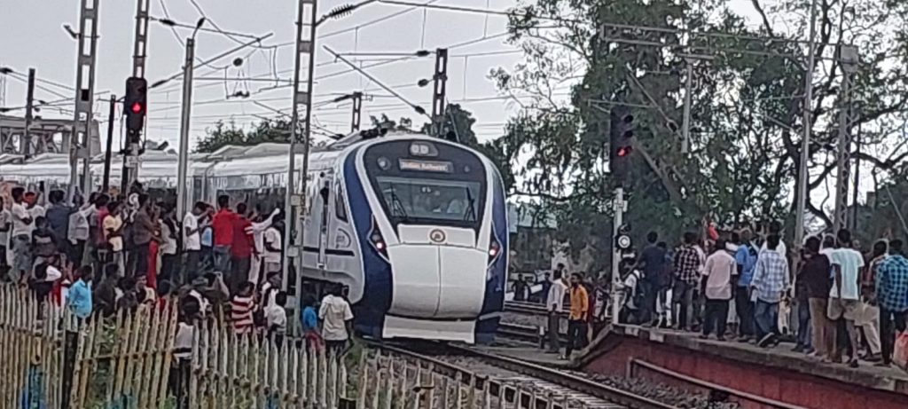 वंदे भारत ट्रेन एक घंटे विलंब 15 बजकर 25 मिनट पर लखीसराय स्टेशन पर पहुंची. ट्रेन के पहुंचने के साथ ही ड्राइवर एवं गार्ड को स्वागत तथा सम्मान किया गया. 10 मिनट तक ट्रेन खड़ी रहने के बाद ट्रेन को हरी झंडी दिखा कर हावड़ा के लिए रवाना कर दिया गया. इस दौरान सेल्फी लेने वालों की भीड़ जुटी रही.