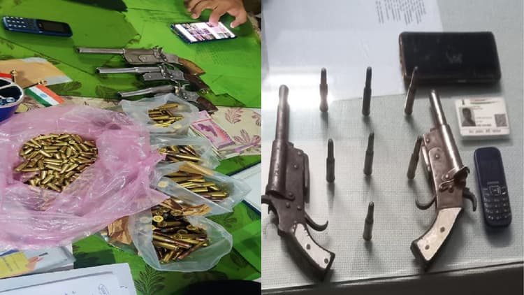 सहरसा जिले के सौर बाजार थाना क्षेत्र के काप निवासी धीरेंद्र प्रसाद यादव के पुत्र कुणाल कुमार यादव तथा लाल बहादुर यादव के पुत्र प्रभाकर कुमार को गिरफ्तार किया गया जिनके पास से चार सौ राउंड जिंदा कारतूस व तीन कट्टा, 74 हजार रुपये नगद, दो मोबाइल बरामद किया गया है.