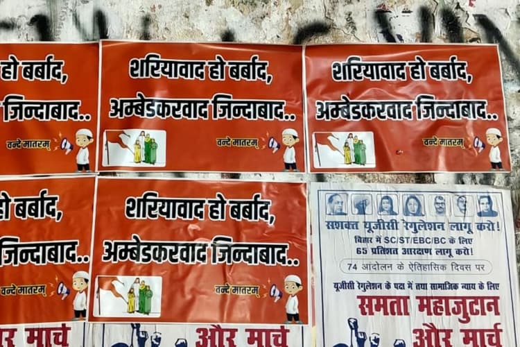 रविवार की सुबह जब छात्र सोकर उठे, तो विश्वविद्यालय के हर कोने में एक खास तरह के पोस्टर नजर आए. इन पोस्टरों पर सीधे तौर पर ‘शरियाबाद’ और ‘मीमवाद’ को बर्बाद करने की बात कही गई है, साथ ही साथ ‘अंबेडकरवाद’, ‘सावरकरवाद’ और ‘पटेलवाद’ जिंदाबाद के नारे बुलंद किए गए हैं.