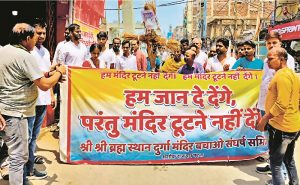 बीते बुधवार से संजय सिंह के नेतृत्व में लोगों ने मंदिर को बचाने के लिए आमरण अनशन शुरू किया था. जो अभी भी जारी है. आमरण अनशन शुरू करने से पहले संजय सिंह ने माता दुर्गा की पूजा-अर्चना की थी. मंदिर के मुख्य पुजारी संजय पांडेय ने माल्यार्पण कर अनशन शुरू कराया. इसके बाद स्थानीय महिलाओं ने भी पूजा-अर्चना कर भजन-कीर्तन किया. स्थानीय लोगों ने प्रशासन व सरकार से मंदिर को यथावत रहने देने का आग्रह किया.