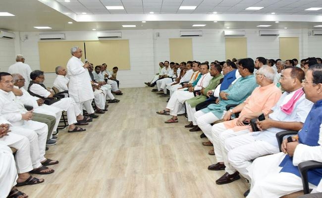 पटना : बिहार मेंबुधवारकी शाम महज कुछ घंटेके भीतर भारी राजनीतिक गहमा गहमीकेबीच सूबेका सियासी समीकरण पूरी तरह से उलटगया. बुधवार शाम 6 बजे तक महागठबंधन के नेता के रूप में मुख्यमंत्री पद पर बैठे नीतीश कुमार ने 6:30 बजे अपने पद से इस्तीफा देदिया और रात 9 बजे तक उन्हें भाजपा की ओर से एनडीए का नेता घोषित कर दिया गया. जिसके बाद नीतीश कुमार के आवास पर बुलायी गयी जदयूऔर भाजपाविधायकों की संयुक्त बैठक में नीतीश को एनडीए विधायक दल कानेताचुनागया.