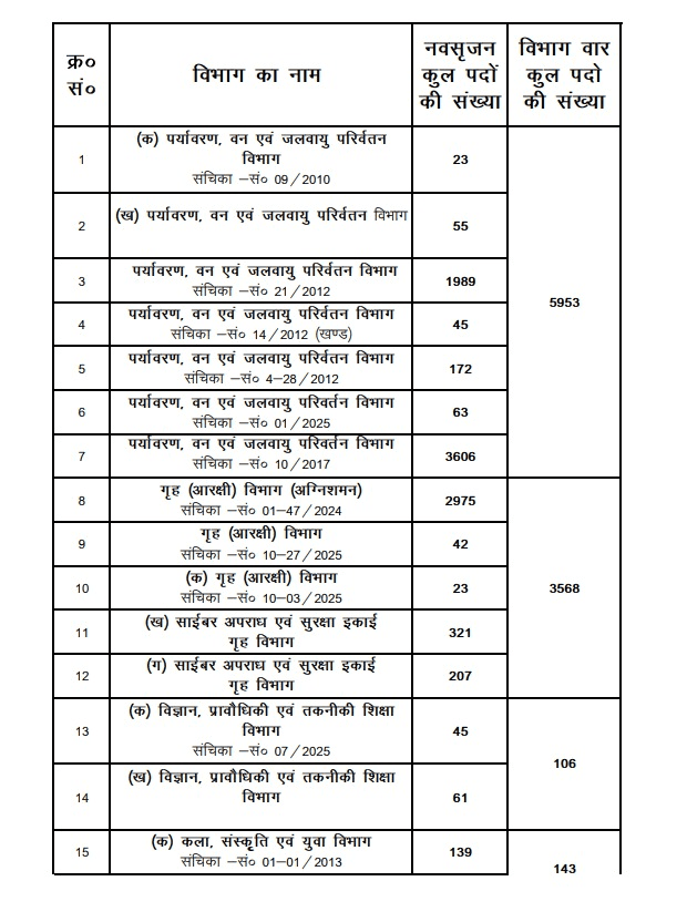 सरकारी आंकड़ों के अनुसार, पर्यावरण, वन और जलवायु परिवर्तन विभाग में सबसे अधिक 5,953 नई नियुक्तियों की घोषणा की गई. गृह विभाग में 3,568, विज्ञान और तकनीकी शिक्षा विभाग में 106, कला-संस्कृति और युवा विभाग में 143, आपदा प्रबंधन विभाग में 87, शिक्षा विभाग में 89, पशु एवं मत्स्य संसाधन विभाग में 72, वित्त विभाग में 12 और कृषि विभाग में 293 नए पद बनाए गए हैं.