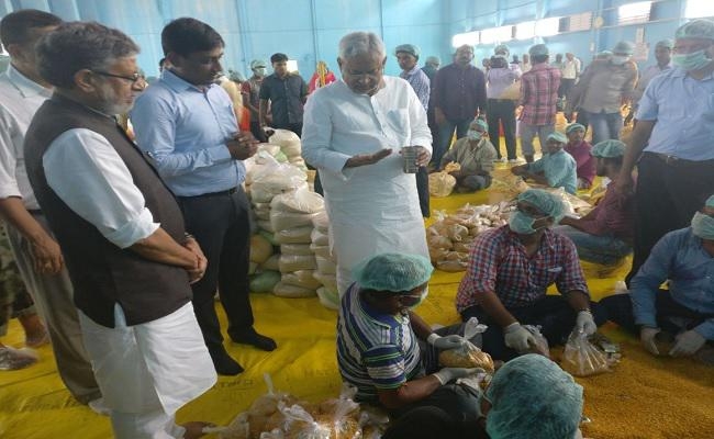 मुख्यमंत्रीनीतीश कुमार बेतिया नगर भवन स्थित इनडाेर स्टेडियम पहुंचकर वहां बाढ़ पीड़िताें के लिये तैयार किये जा रहे फूड पैकेट कार्य का भी निरीक्षण किया आैर वरीय अधिकारियों काे आवश्यक दिशानिर्देश दिया. इस अवसर पर उपमुख्यमंत्री सुशील कुमार माेदी, मुख्य सचिव अंजनी कुमार सिंह, प्रधान सचिव वन एवं पर्यावरण सह प्रभारी सचिव पश्चिम चंपारण विवेक कुमार सिंह, मुख्यमंत्री के सचिव अतीश चंद्रा, जिलाधिकारी बेतिया डॉ. नीलेश देवरे, पुलिस अधीक्षक बेतिया विनय कुमार सहित अन्य वरीय अधिकारी उपस्थित थे.
