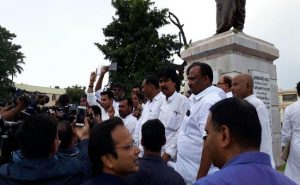 सदन की कार्यवाही स्थगित होने के बाद तेजस्वी यादव की अगुवाई में विपक्ष के विधायक विधानसभा परिसर में कर्पूरी ठाकुर की प्रतिमा के पास धरना पर बैठ गये और सरकार के खिलाफ नारेबाजी करने लगे. तेजस्वी यादव काफी गुस्से में थे, वह अचानक विधानसभा के अंदर से विधायकों के साथ तैश में बाहर निकले और सीधे कर्पूरी की प्रतिमा के पास जाकर रुके. तेजस्वी यादव वहां प्रतिमा के नीचे विधायकों के साथ जाकर धरने पर बैठ गये और कहा कि भले ही सूली पर चढ़ना पड़े लेकिन सृजन घोटाले के दोषियों को जब तक सजा नहीं मिलती है, वह और उनके विधायक चुप नहीं बैठेंगे. तेजस्वी यादव ने कहा कि बिहार के मुख्यमंत्री नीतीश कुमार और उपमुख्यमंत्री सुशील कुमार मोदी जब तक इस्तीफा नहीं दे देते, तब तक यह विरोध जारी रहेगा.