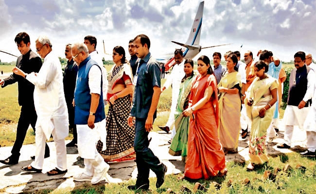 प्रधानमंत्री से जनप्रतिनिधियों की दो बार हुई मुलाकात : प्रधानमंत्री नरेंद्र मोदी के आगमन से लगभग 10 मिनट पहले मुख्यमंत्री नीतीश कुमार और अन्य स्थानीय जनप्रतिनिधि और मुलाकात के लिए आये हुए अन्य वीआइपी रनवे की ओर बढ़ गये. विशेष विमान से उतरने के बाद प्रधानमंत्री चल कर कतारबद्ध इन लोगों से मिले और उनका अभिवादन स्वीकार किया. इसके बाद तुरंत ही प्रधानमंत्री पास ही हेलीपेड पर खड़े हेलीकॉप्टर पर सवार होकर हवाई सर्वेक्षण के लिए निकल गये. वहीं हवाई सर्वेक्षण से 11:05 बजे लौटने के बाद प्रधानमंत्री सीधे मीटिंग हॉल में चले गये. मीटिंग समाप्त होने के बाद जब वे दिल्ली रवाना होने के लिए निकले तो एयरपोर्ट पर मौजूद जनप्रतिनिधियों से उन्होंने मुलाकात की और विशेष विमान पर सवार होकर वापस लौट गये.
