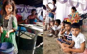 20 अगस्त से चल रहे इस कैंप में सुबह 10 बजे से चार बजे व शाम छह बजे से रात 10 बजे तक भोजन की व्यवस्था रहती है. अब दोपहर 2: 22 बजे हैं. भोजन के स्टॉल पर भीड़ कम गयी है. मैं कैंप दूसरी ओर पीड़ितों से रू-ब़-रू होने की कोशिश करता हूं. कैंप की दक्षिण छोर पर एक महिला अपने ढाई साल के रोते हुए बच्चे को गोद में लेकर उसे शांत कराने का प्रयास कर रही है. मन नहीं माना और मैं उसके पास पहुंच गया. पूछने जब उसने जो दर्द बयां किया, उसे जान कर हर संवेदनशील इंसान सोचने को मजबूर हो जायेगा. ग्लाेबल विलेज के युग में आज हम कहां है?