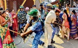 पुरुष पुलिसकर्मियों ने महिलाओं से की धक्का-मुक्की