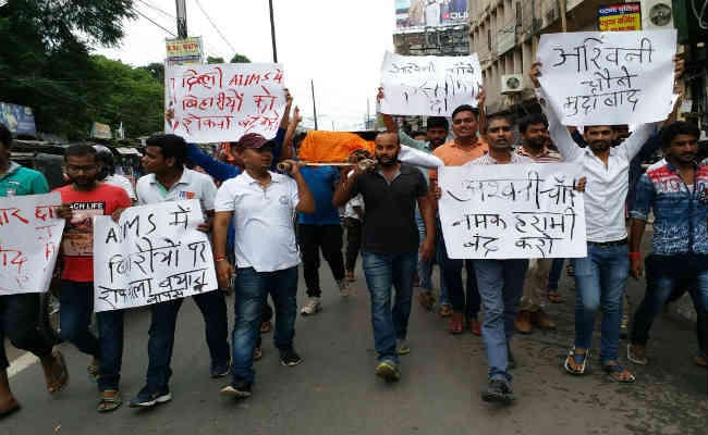 पटना: केंद्रीय स्वास्थ्य राज्य मंत्री अश्विनी चौबे के द्वारा बिहार के लोगों का एम्स दिल्ली में इलाज के संबंध में दियेगये आपत्तिजनक बयान के विरोध मेंआज जन अधिकार छात्र परिषद के अध्यक्ष गौतम आनंद के नेतृत्व में पटना विश्व विद्यालय से कारगिल चौक, गांधी मैदान तक उनका अर्थी जुलूस निकाला गया.इस जुलूस में प्रभात कुमार, रोहन यादव, अखिलेश कुमार, मनमोहन कुमार समेत सैकड़ों की संख्या में छात्रों ने हिस्सा लिया. इस दौरान गौतम कुमार ने अश्विनी चौबे के बयान की निंदा की और बिहारियों का अपमान करने आरोप लगाया.
