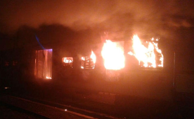 Fire broke out in four coaches of Patna-Mokama passenger express. Flames were later doused, no casualties or injuries reported (earlier visuals) pic.twitter.com/q2gIb5embY