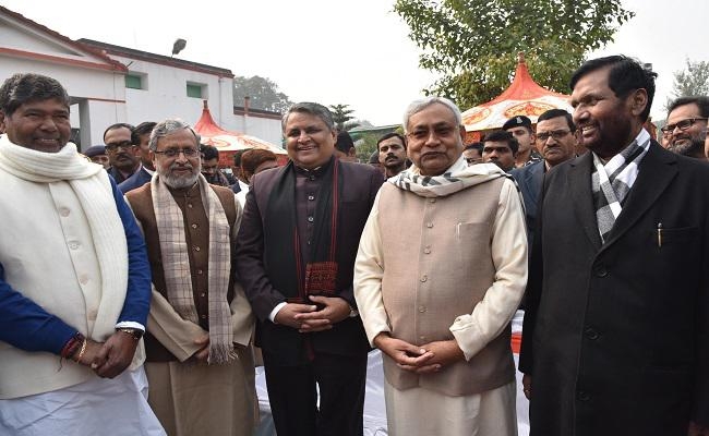 दरअसल, लोजपा प्रदेश कार्यालय में रविवार को मकर संक्रांति के अवसर पर दही-चूड़ा भोज का आयोजन किया गया. इस भोज के आयोजन की मेजबानी पार्टी के राष्ट्रीय अध्यक्ष व केंद्रीय उपभोक्ता मामले, खाद्य एवं सार्वजनिक वितरण मंत्री रामविलास पासवान, लोजपा केंद्रीय संसदीय बोर्ड के अध्यक्ष व सांसद चिराग पासवान, लोजपा प्रदेश अध्यक्ष व पशु एवं मत्स्य संसाधन मंत्री पशुपति कुमार पारस, सांसद रामचंद्र पासवान ने किया.इस भोज में मुख्यमंत्री नीतीश कुमार नेभी शिरकत की. लोजपा के भोज में शिरकत करने के बाद मुख्यमंत्री नीतीश कुमार भाजपा एमएलसी रजनीश कुमार के आवास पहुंचे. यहां उपमुख्यमंत्री सुशील कुमार मोदी भी मौजूद थे. इसे लेकर एनडीए खेमे में एकजुटता के संदेश को लेकर चर्चाएं तेज हो गयी हैं.