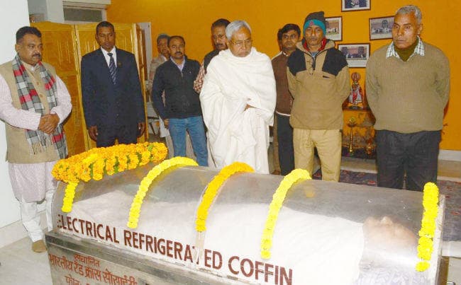 मुख्यमंत्री नीतीश कुमार ने त्रिपुरा और छत्तीसगढ़ के पूर्व राज्यपाल दिनेश नंदन सहाय के निधन पर गहरा शोक व्यक्त किया है. मुख्यमंत्री ने अपने शोक संदेश में कहा कि दिनेश नंदन सहाय एक कुशल राजनेता, पुलिस अधिकारी एवं कर्मठ समाजसेवी थे. उनके निधन से न केवल राजनीतिक, बल्कि सामाजिक क्षेत्र में भी अपूरणीय क्षति हुई है. उन्होंने कहा कि दिनेश नंदन सहाय का अंतिम संस्कार राजकीय सम्मान के साथ किया जायेगा. उन्होंने दिवंगत आत्मा की चिर शांति तथा उनके परिजनों, अनुयायियों एवं प्रशंसकों को दु:ख की इस घड़ी में धैर्य धारण करने की शक्ति प्रदान करने की ईश्वर से प्रार्थना की है.