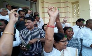 परिसर में होली मन रही थी और कांग्रेस राजद के विधायक तेज आवाज में होली भी गा रहे थे. सभी विधायक एक दूसरे के गालों में हरे रंग का गुलाल लगाकर स्वागत कर रहे थे. महिला विधायकों ने एक दूसरे के गालों में गुलाल लगाकर और लालू यादव जिंदाबाद के नारे के साथ होली को सेलिब्रेट किया. बाहर निकले विधायक भाई विरेंद्र ने कहा कि हम सुबह से कह रहे हैं कि मुझे पता था कि कहां का वोटर कैसा है और कौन वोट देगा. रिजल्ट हमको पता था. उन्होंने कहा कि यह सामाजिक न्याय की जीत है, हमारे नेता लालू प्रसाद यादव के विचारों की जीत है. हमारे प्रतिपक्ष के नेता तेजस्वी यादव जिन्हें लोग बबुआ कहते थे, बिहार की जनता ने इस चुनाव में मुहर लगा दी है कि हमारा अगला मुख्यमंत्री तेजस्वी यादव होगा. भभुआ सीट पर हुई महागठबंधन की हार का ठीकरा राजद विधायक ने कांग्रेस के नेताओं पर फोड़ा. भाई विरेंद्र ने कहा कि कांग्रेस के कुछ नेता नीतीश कुमार से मिले हुए हैं, वहीं लोगों ने मिलकर वहां चुनाव हराया है.