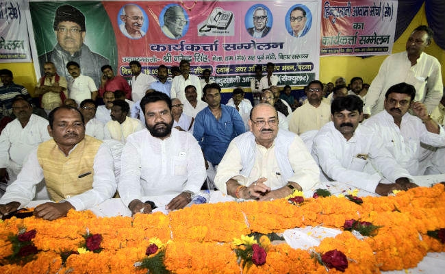 पटना : हिंदुस्तानी आवाम मोर्चा के नरेंद्र सिंह गुट ने रविवार को जीतनराम मांझी के खिलाफ मोर्चा खोलते हुए पटना के अवर अभियंता संघ भवन में महासम्मेलन किया. महासम्मेलन में हम के बागी धड़े ने जीतनराम मांझी की जगह गजेंद्र मांझी को पार्टी का नया अध्यक्ष घोषित किया. मौके पर उपस्थित पार्टी नेता नरेंद्र सिंह ने एलान कर दिया कि सोमवार को पार्टी का विलय जदयू में किया जायेगा. मालूम हो कि जदयू के राष्ट्रीय अध्यक्ष नीतीश कुमार से विरोध कर नरेंद्र सिंह ने जीतनराम मांझी को मुख्यमंत्री बनाने में मुख्य भूमिका निभायी थी.नरेंद्र सिंह ने कहा कि हिंदुस्तानी आवाम मोरचा (हम) हमारी पार्टी है.