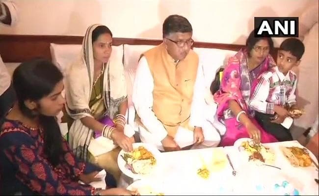 रविशंकर प्रसाद ने ट्वीट करते हुए कहा कि हमारे एससी/एसटी बहन-बेटियों को भी अच्छे होटल में खाना खाने का पूरा अधिकार है. उन्होंनेअपने एक अन्य ट्वीट में कहा, दलितों के वोट के लिए उनका उपयोग करने वाले लोगों को उनके अच्छे होटल में खाने से परेशानी हो रही है. दलित महिलाओं को आइटी ट्रेनिंग देकर मोदी सरकार ने उनको सशक्त करने का काम किया है. देश के छह करोड़ गरीबों को सरकार ने डिजिटली साक्षर किया है. वोट के लिए दलितों का उपयोग करने वालों के लिए सशक्तिकरण का यह ईमानदार प्रयास असहज स्थिति पैदा कर रहा है.