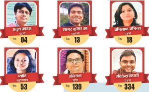 इसमें बड़ी संख्या में बिहार के अभ्यर्थियों ने अच्छी रैंक के साथ सफलता हासिल की है. पटना के अतुल प्रकाश को चौथी रैंक मिली है, जबकि सहरसा जिले के चैनपुर के सागर कुमार झा को 13वां और पटना की अभिलाषा अभिनव को 18वां व रविकेश त्रिपाठी को 334वां स्थान मिला है. कहलगांव की ज्योति को 53वीं, भागलपुर के मोतिउर्रहमान को 154वीं, मुंगेर के अविनाश को 139वीं और बेगूसराय के योगेश गौतम को 172वीं रैंक मिली है. टॉप 25 में आठ लड़कियां शामिल हैं. टॉप 10 में दिव्यांग सौम्या शर्मा भी शामिल हैं. उन्होंने नौवीं रैंक प्राप्त की हैं.