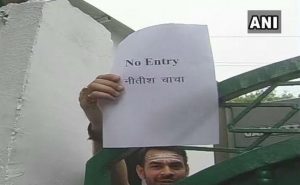 तेज प्रताप ने अपनी मां राबड़ी देवी के अावास के बाहर लिखवाया, ”नो एंट्री चाचा नीतीश”