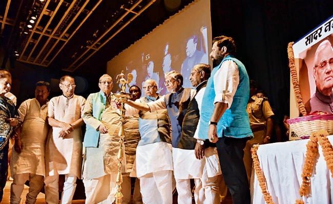 पटना : अटल बिहारी वाजपेयी की कविता में ऐसे भाव छिपे हैं, जो सबके लिए प्रेरणादायी है. उनके व्यक्तित्व की समीक्षा करने में वर्षों लगेंगे कि वे राजनेता, प्रधानमंत्री या कवि थे. जब उन्होंने सामाजिक जीवन में प्रवेश किया तो उसके अनेक पहलू थे. पहला काम उन्होंने पत्रकार बनकर कई पत्रिकाओं के संपादन का किया. ये बातें बिहार के राज्यपाल लालजी टंडन ने कहीं.वे शनिवार को अटल बिहारी वाजपेयी की स्मृति में आयोजित काव्यांजलि के दौरान ज्ञान भवन में बोल रहे थे. इसका आयोजन राज्यसभा सांसद आरके सिन्हा ने किया था. राज्यपाल ने कहा कि उनकी एक-एक कविता एक-एक पुस्तक के बराबर है.