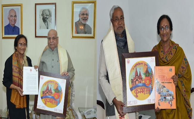 पटना : उत्तर प्रदेश की पर्यटन मंत्री रीता बहुगुणा जोशी ने बिहार के राज्यपाल लाल जी टंडन और मुख्यमंत्री नीतीश कुमार से शनिवार को मुलाकात कर उन्हें कुंभ 2019 में आने का निमंत्रण दिया. बहुगुणा ने पटना स्थित राजभवन पहुंचकर राज्यपाल लाल जी टंडन से शिष्टाचार मुलाकात की और उन्हें ‘कुंभ 2019′ के अवसर पर प्रयागराज आने के लिए आमंत्रित करते हुए उत्तर प्रदेश के मुख्यमंत्री योगी आदित्यनाथ का औपचारिक आमंत्रण-पत्र भी सौंपा. उत्तरप्रदेश की पर्यटन मंत्री ने इस अवसर पर राज्यपाल को कुंभ 2019 से संबंधित पुस्तकें एवं प्रतीक-चिह्न भी भेंट की. बिहार के राज्यपाल ने उत्तर प्रदेश सरकार के औपचारिक आमंत्रण को स्वीकार करते हुए यथासमय ‘कुंभ मेले’ में आने पर अपनी सहमति प्रदान की.