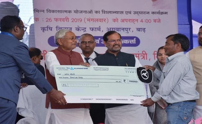 पटना :बिहारके मुख्यमंत्री नीतीश कुमार ने आज बाढ़ में विभिन्न विकासात्मक योजनाओं का उद्घाटन एवं शिलान्यास किया. जनसभा को लेकर बने मंच पर पटना के उप विकास आयुक्त डॉ आदित्य प्रकाश सहित स्थानीय नेताओं, जनप्रतिनिधियों एवं सामाजिक कार्यकर्ताओं ने मुख्यमंत्री को पुष्प-गुच्छ, अंगवस्त्र तथा प्रतीक चिन्ह भेंट करने के साथ ही माला पहनाकर उनका भव्य स्वागत किया. जीविका समूह की दीदियों ने मुख्यमंत्री के अभिनंदन में स्वागत गान प्रस्तुत किया.