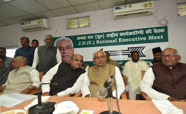 पटना : जदयू की राष्ट्रीय कार्यकारिणी ने सोमवार को लोकसभा चुनाव के लिए चुनाव क्षेत्र की पहचान और उम्मीदवारों के चयन के लिए राष्ट्रीय अध्यक्ष व बिहार के मुख्यमंत्री नीतीश कुमार को अधिकृत कर दिया. चुनाव के पूर्व राष्ट्रीय कार्यकारिणी की सोमवार को पटना में हुई अहम बैठक में जदयू ने साफ कर दिया कि वह धारा 370 समेत अन्य पुराने विवादित मामलों में भाजपा से इतर अपने पूर्व के स्टैंड पर कायम है.