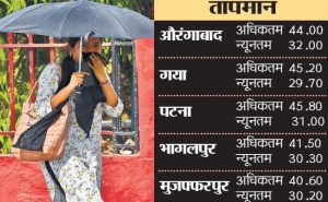 आइएमडी पटना के मुताबिक पटना शहर में अगले तीन दिन लू चलेगी. 18 और 21 जून के बीच आंधी-पानी की संभावना है. उल्लेखनीय है कि पटना से कुछ ही कम तापमान साउथ वेस्ट के दूसरे शहरों में रहा. गया का तापमान 45 डिग्री सेल्सियस रहा.