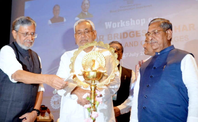 पटना : ज्ञानभवन में ‘मेजर ब्रिजेज इन बिहार : इनोवेशन एंड चैलेंजेज’ पर आयोजित वर्कशॉप को संबोधित करते हुए उपमुख्यमंत्री सुशील कुमार मोदी ने कहा कि बिहार एक बाढ़ प्रभावित राज्य है. नदियों की धारा एवं दिशा को ध्यान में रखते हुए पुल का डिजाइन हो, ताकि पानी का अप्रत्याशित तेज बहाव बाधित हुए बिना प्रवाहित हो और बाढ़ का प्रभाव भी कम हो सके.