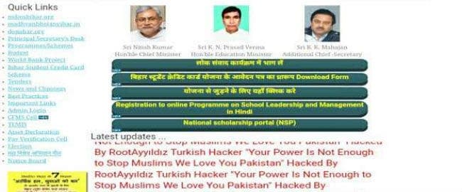 पटना : शिक्षा विभाग की आधिकारिक वेबसाइट को हैकर ने रविवार को हैक कर लिया. वेबसाइट पर हैकर ने अपना नाम रूटायिल्दिज तुर्किश लिखा. हैकर ने विभाग की वेबसाइट पर अपने नापाक पाकिस्तानी प्रेम के आपत्तिजनक संदेश को तीस लाइनों में बार-बार दोहराया था. अपराह्न में ही हैक की गयी विभागीय वेबसाइट से आपत्तिजनक संदेश को देर शाम 7:30 बजे हटाया जा सका.