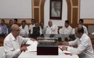 पटना : पटना मेट्रो रेल कॉरपोरेशन लिमिटेड ने दिल्ली मेट्रो रेल कॉरपोरेशन (डीएमआरसी) के साथ बुधवार को एक समझौता पर हस्ताक्षर किया. बिहार के मुख्यमंत्री नीतीश कुमार और उपमुख्यमंत्री सुशील कुमार मोदी की उपस्थिति में डीएमआरसी के महाप्रबंधक मंगू सिंह ने पटना मेट्रो रेल कॉरपोरेशन लिमिटेड के साथ समझौते पर हस्ताक्षर किया.