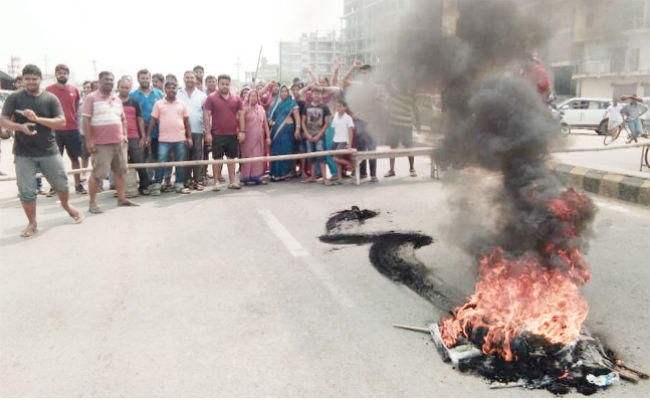 एक मोहल्ले से पानी निकालने से दूसरे मोहल्ले में जलजमाव, सड़क पर उतरे लोग, आगजनी