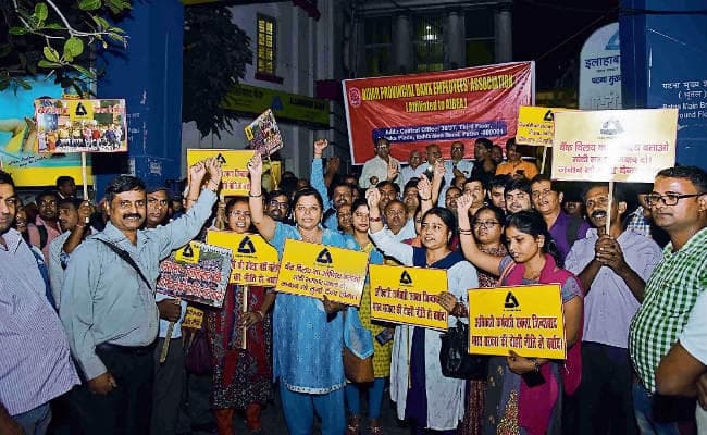 पटना : सार्वजनिक क्षेत्र के बैंकों के विलय के विरोध में मंगलवार को 30 हजार से अधिक बैंक कर्मचारी हड़ताल पर रहेंगे. हड़ताल का आह्वान ऑल इंडिया बैंक इंप्लाइज एसोसिएशन और बैंक इंप्लाइज फेडरेशन ऑफ इंडिया ने संयुक्त रूप से किया है.