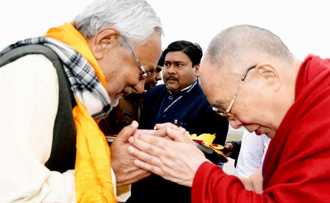 मुख्यमंत्री नीतीश कुमार ने दलाई लामा को पटना हवाई अड्डे पर दी विदाई